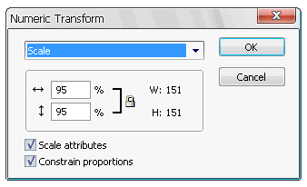 Com a esfera branca criada diminua o tamanho dela, vá em Modify>Transform >Numeric Transform e configure assim: