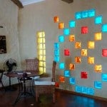 No entanto, as coloridas se adequam mais a pequenos detalhes, podem estar espalhadas por uma parede normal, apenas em uma fileira, de modo aleatório ou compondo imagens, como formas geométricas. A grande vantagem da decoração com tijolo de vidro é a iluminação que ela confere ao cômodo, o que também proporciona alguma economia de energia elétrica, pois faz uso da claridade natural por mais tempo.